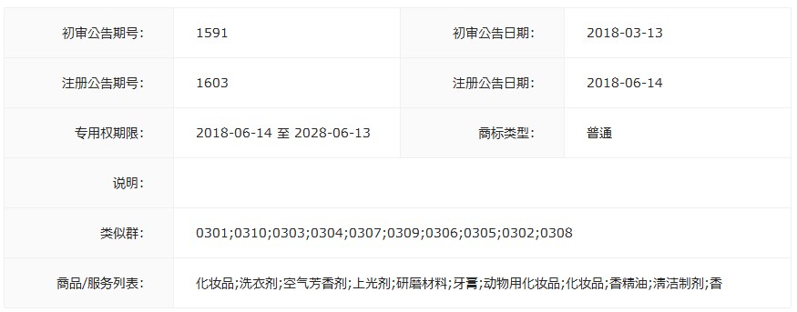 商标分类:第3类 化妆品